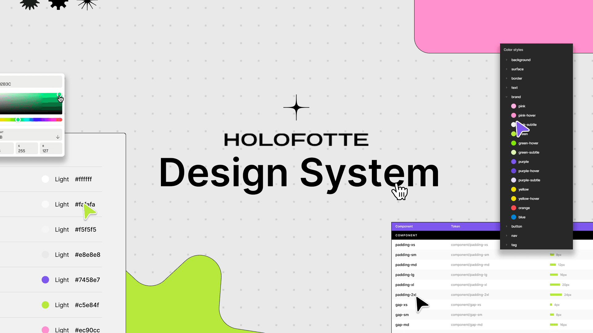 Sistema de design completo desenvolvido para a Holofotte. Tokens, componentes e diretrizes para um produto consistente e escalável.