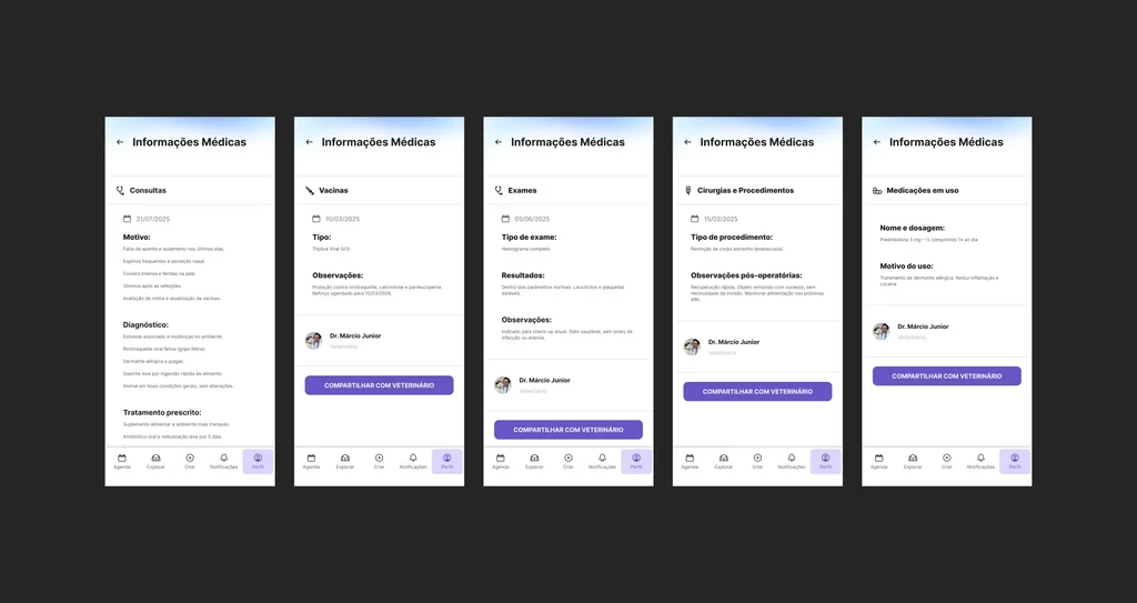 💉 Falta de uma centralização de informações sobre a saúde e rotina do pet (datas, histórico de vacinação, medicamentos, alimentação, etc.);