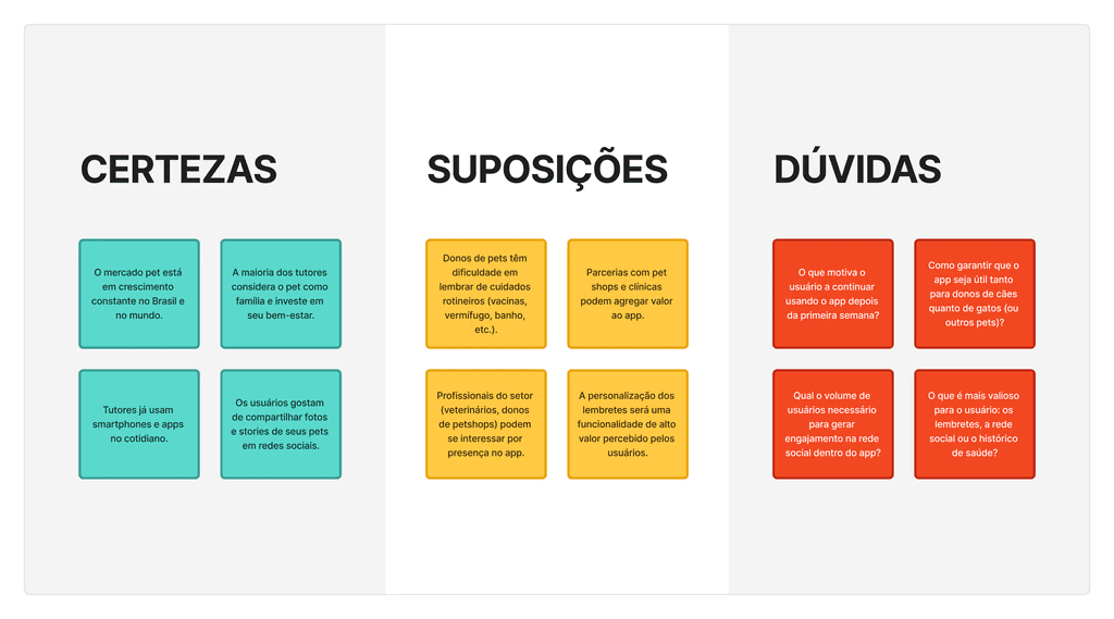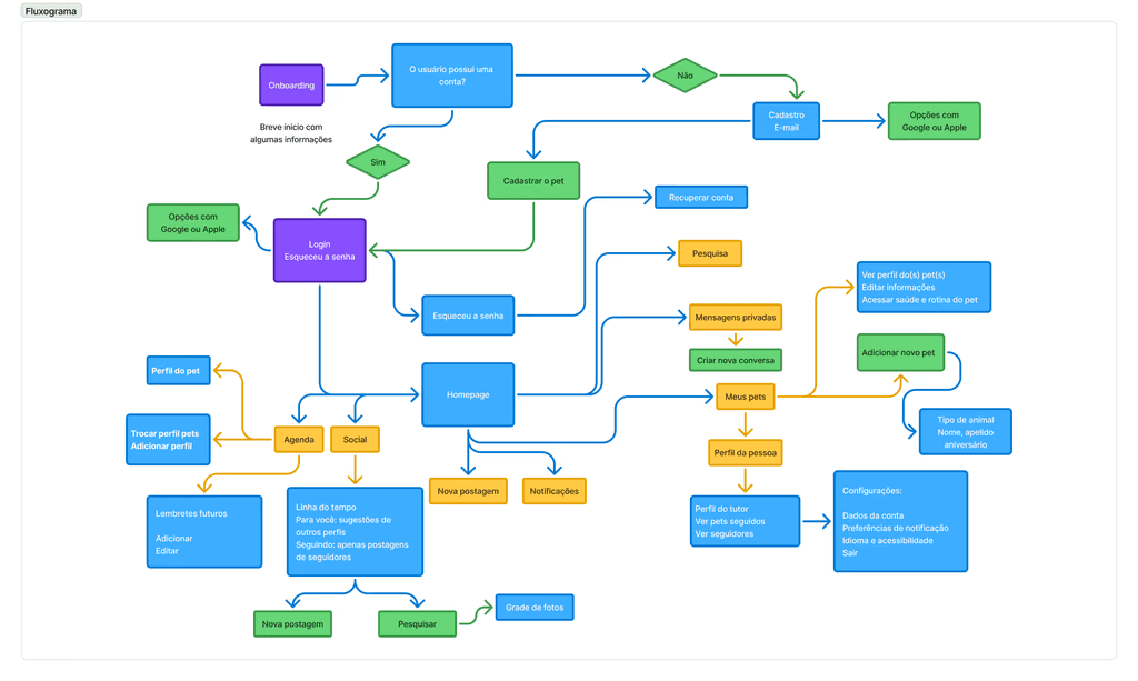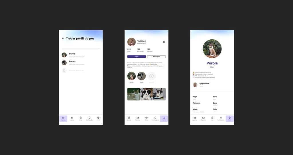 UX centrado no tutor e no pet: Cadastro personalizado de pet e navegação clara entre agenda e social, para evitar que o usuário se perca entre funcionalidades distintas.