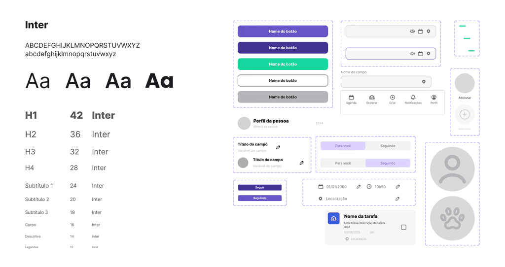 Com o wireframe e o fluxo definido, comecei a elaborar os aspectos principais para o desenvolvimento da style guide, que seriam utilizados no protótipo